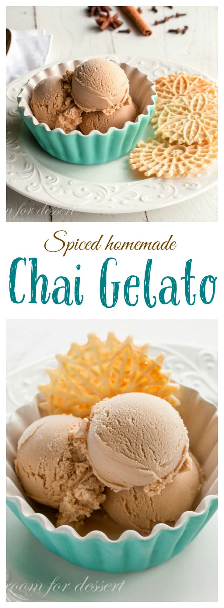 I served the Chai Gelato with Pizzelles, an Italian wafer cookie equally good flavored alongside anise. A perfect combination!