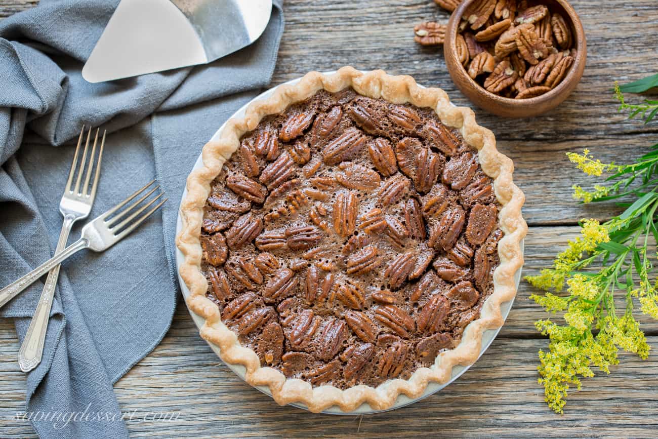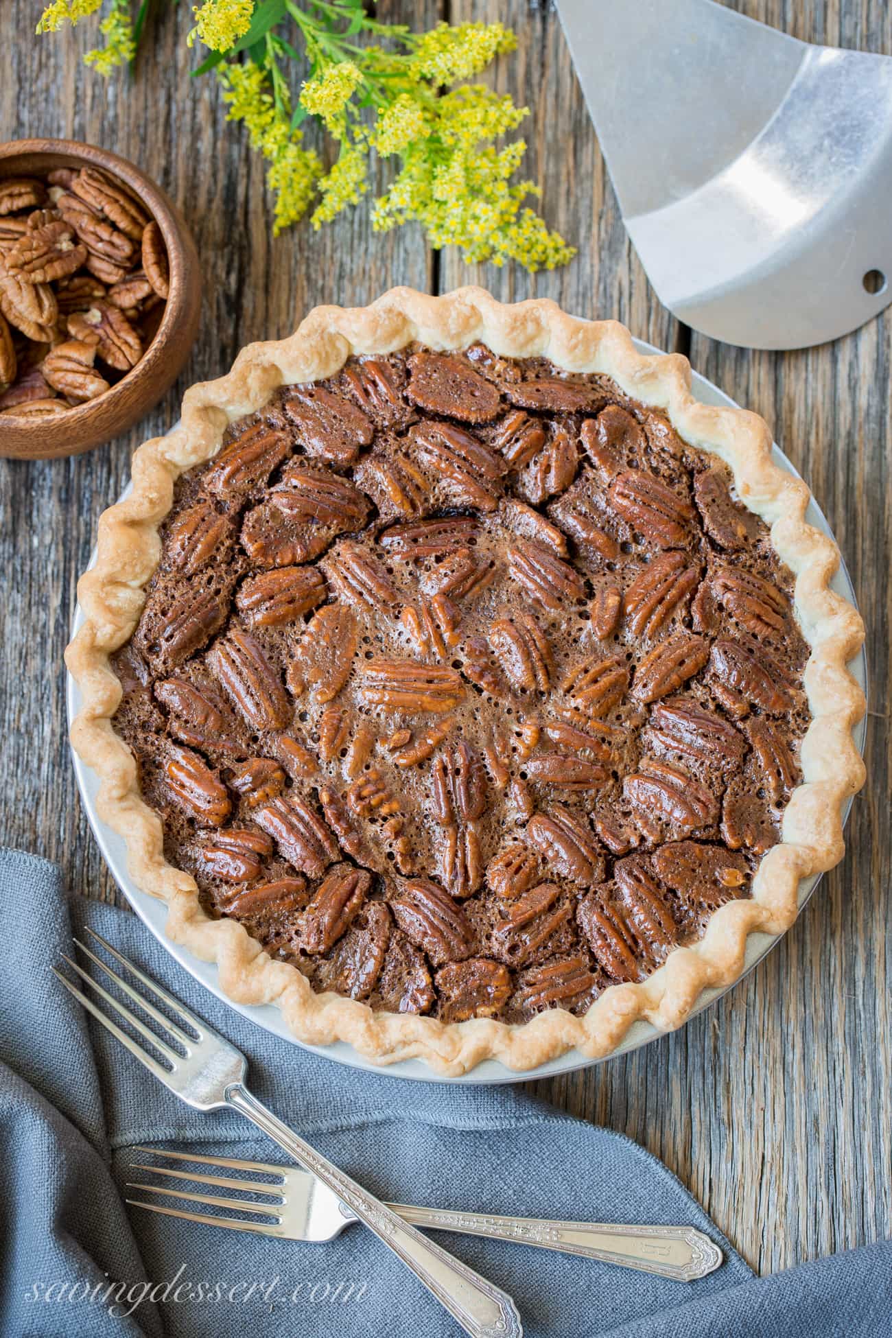 Chocolate Pecan Pie – a menage unit of measurement favorite for generations.