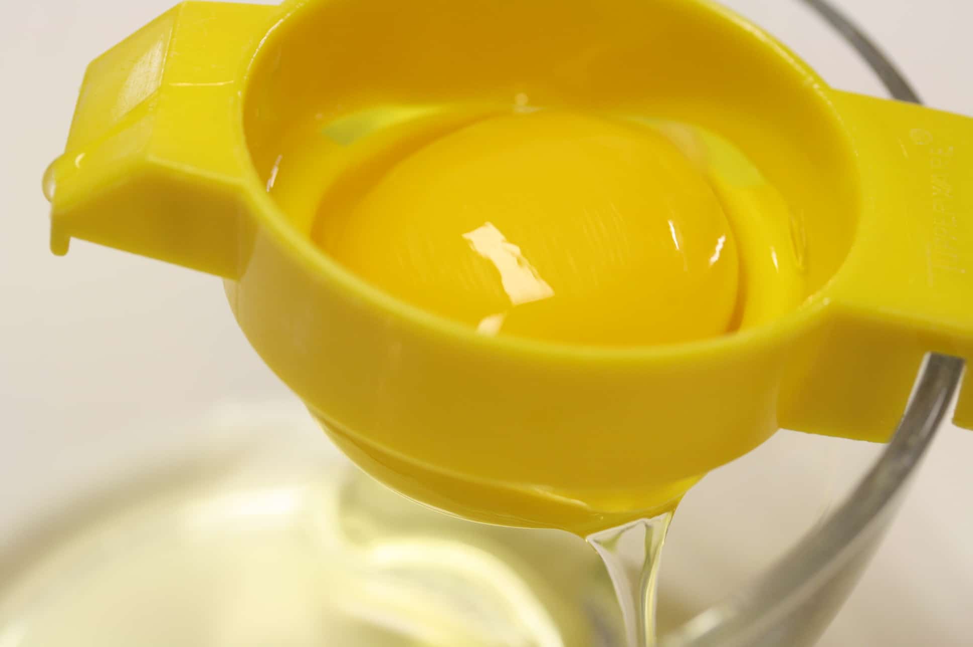 - For the meringue, whip egg whites until they commence to larn foamy.