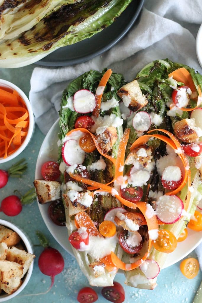 Grilling your romaine makes your salads SO flavorful! The creamy lemon dressing is incredibly delicious together with it'sec make alongside Greek yogurt instead of mayo!